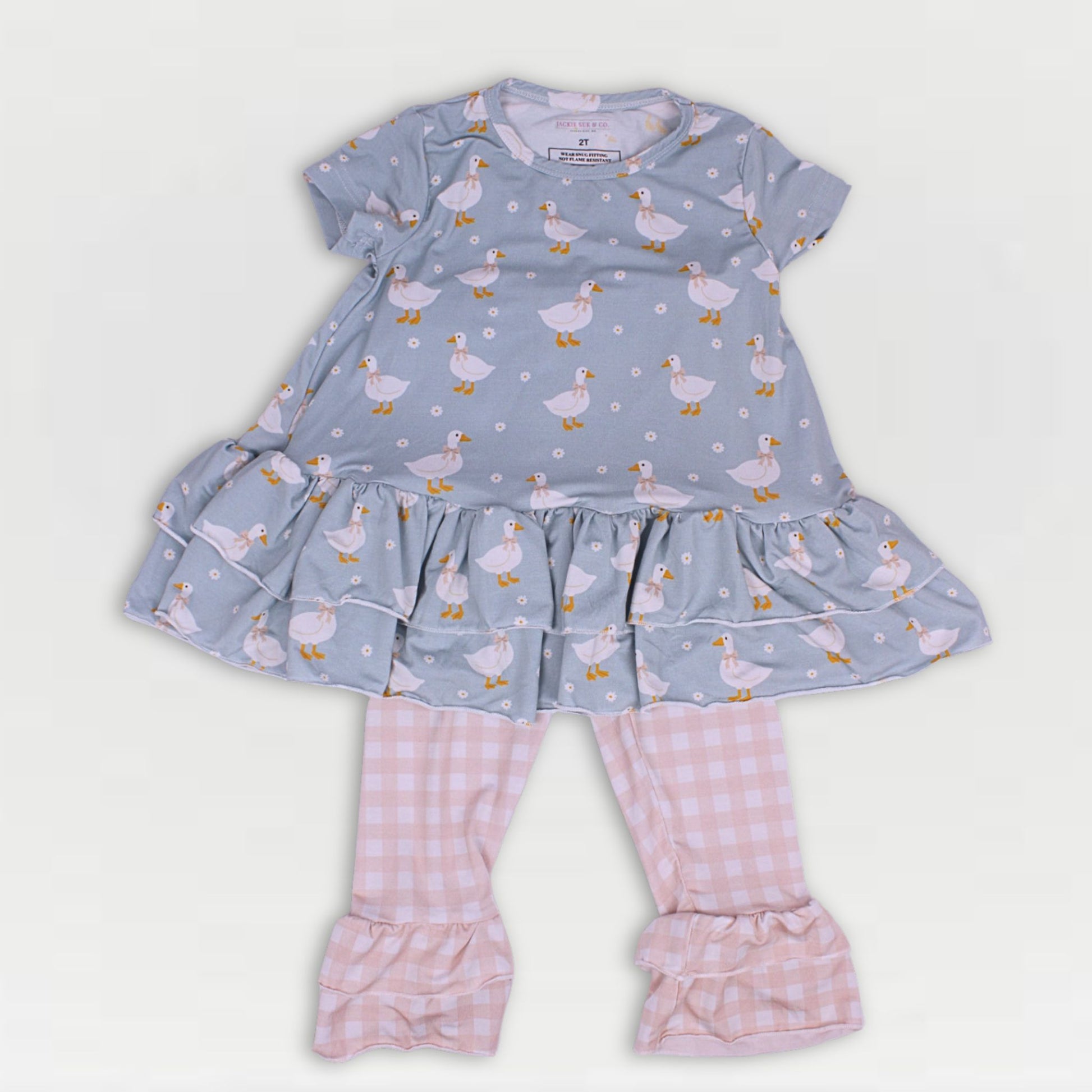 Farmstead Gingham Collection - Girls Goose Bamboo Tunic & Legging Set